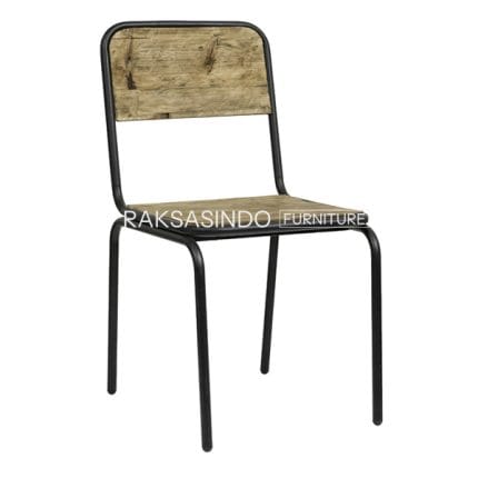 Industrial Steel Teak Simple Dining Side Chair