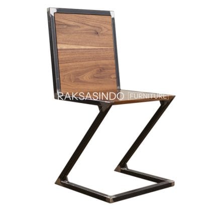 Industrial Steel Zig Zag Teak Dining Side Chair